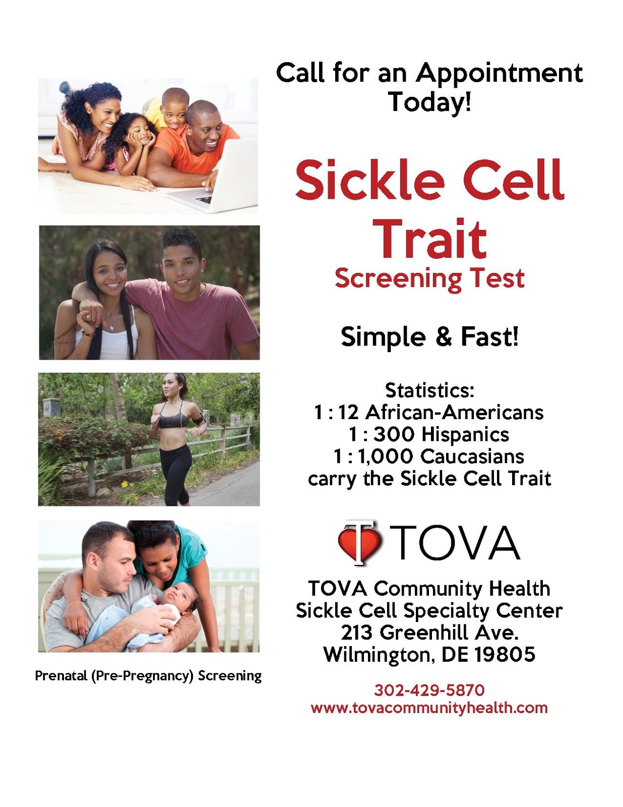Get Screened for Sickle Cell TraitTOVA Primary Specialty Care213 Greenhill Ave.Wilmington, DE 19805www.tovacommunityhealth.org