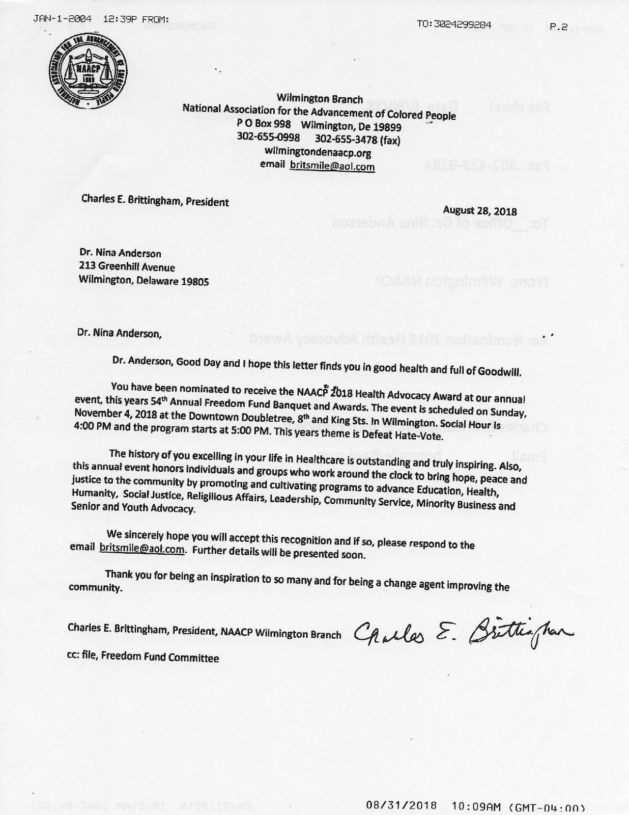 Being nominated for the 2018 NAACP Health Advocacy Award is quite an honor. So many people know my trials and tribulations as a grass roots organizer whose treaded stormy waters in Delaware to increase awareness of a Rare Disease sickle cell anemia that impacts so many. Just when it seems that my efforts to improve access to high quality care in a collaborative effort in Delaware have withered, I get this awesome nomination. For whomever pushed for my nomination, I truly say Thank You! For Delawareans living with Complex Chronic Diseases such as Sickle Cell we have made an impact. This will be a great day of celebration especially for all those who dedicate their lives fighting for social justice, economic inclusion, and health equity. As a black american visionary with progressive ideologies, I pray that the many of the seeds that I have been planted will one day grow into strong- tall trees. I say, the Future Looks Very Bright.