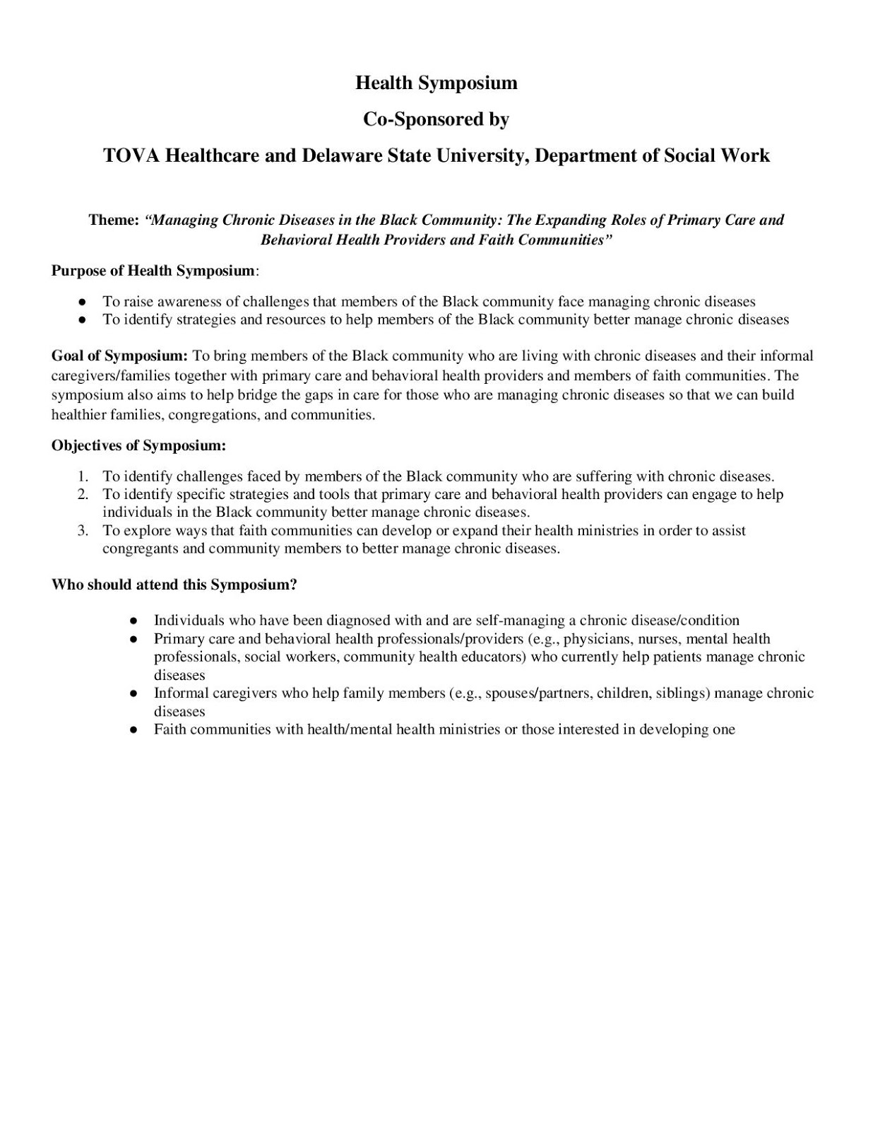 Sponsored by Tova Healthcare and Delaware State UniversityTOVA Healthcare in association with TOVA Community Health213 Greenhill Ave., Wilm, DE 19805PO Box 9663., Wilm, DE 19809Questions Call: (888) 433-4219