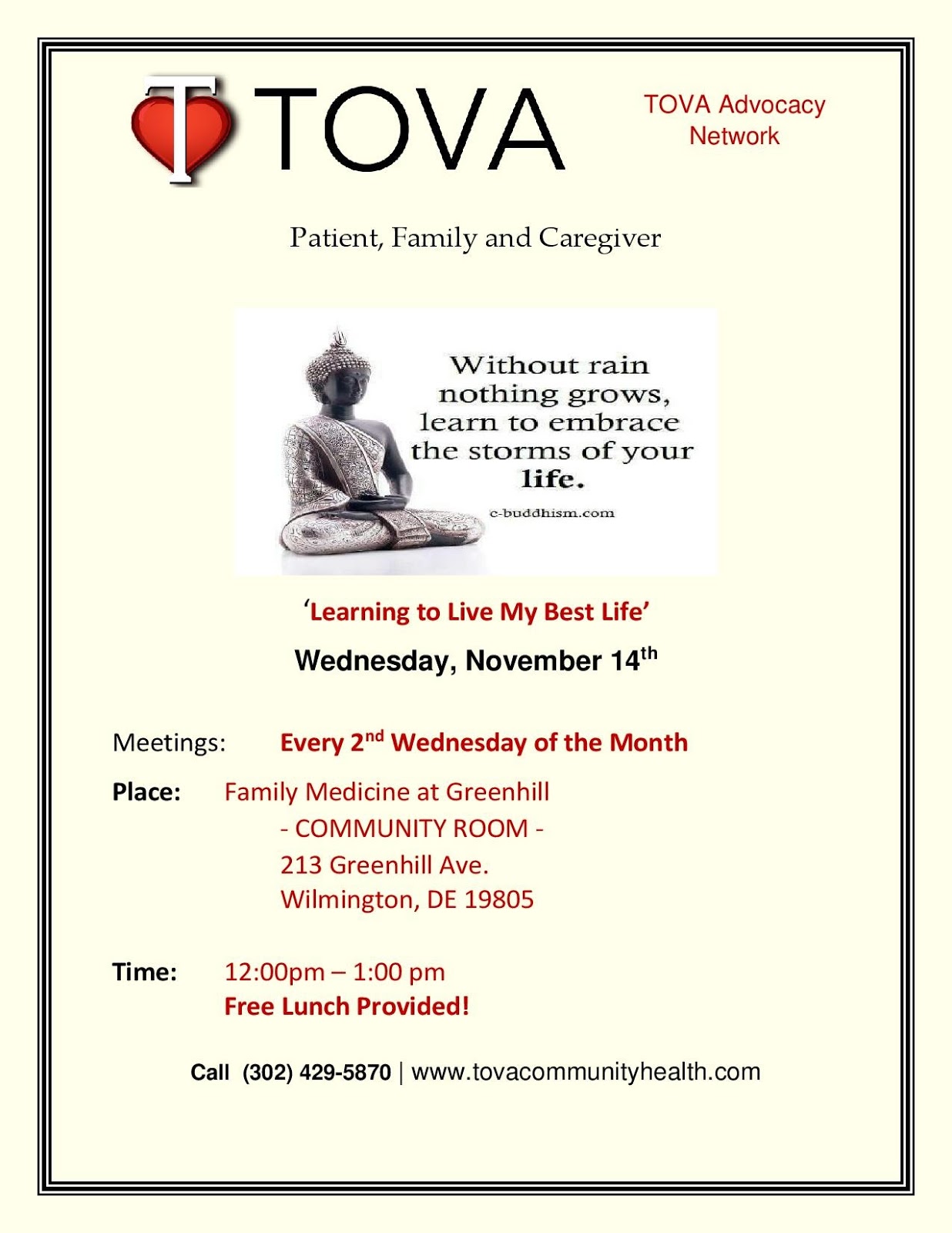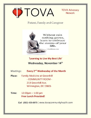TOVA Advocacy Support Network this Wed. Nov. 14th- "Learning to Live My Best Life"