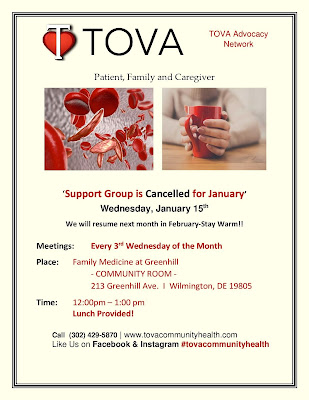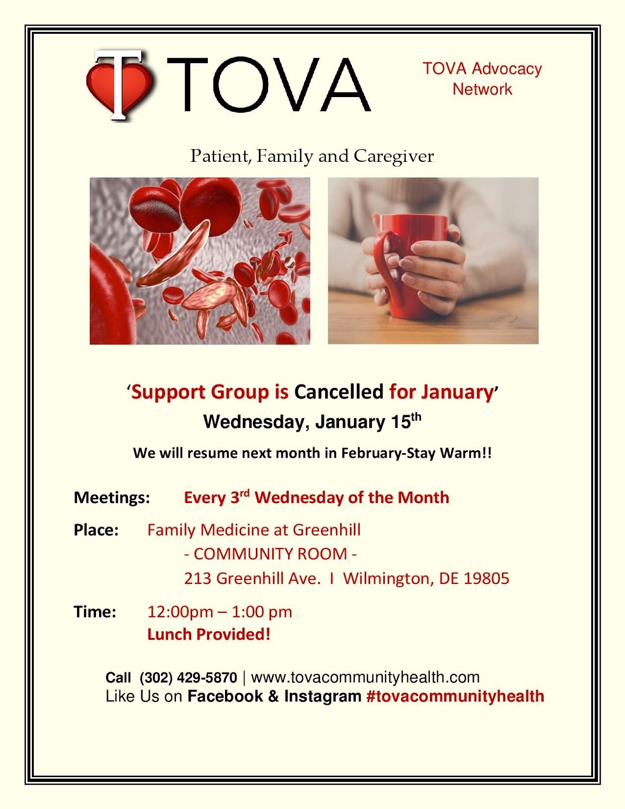 TOVA Support Group is cancelled for January 15th & résume back in February. Stay Warm!