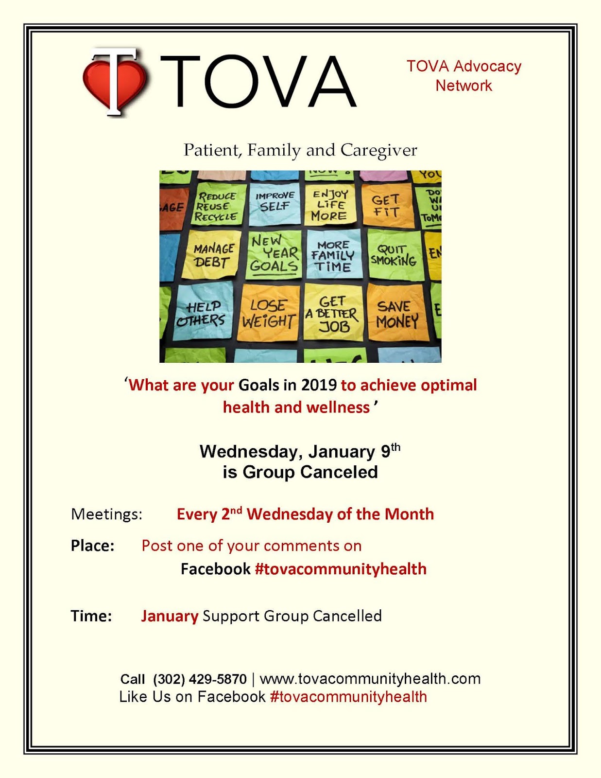 What are your Goals for 2019 to achieve Optimal Health & Wellness. Support Group is Cancelled for this Wed. – Jan. 9th